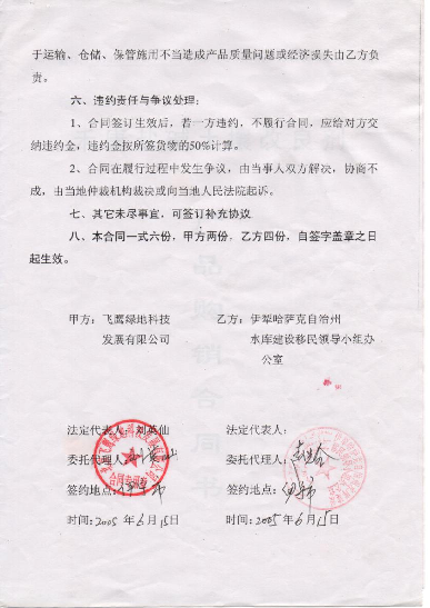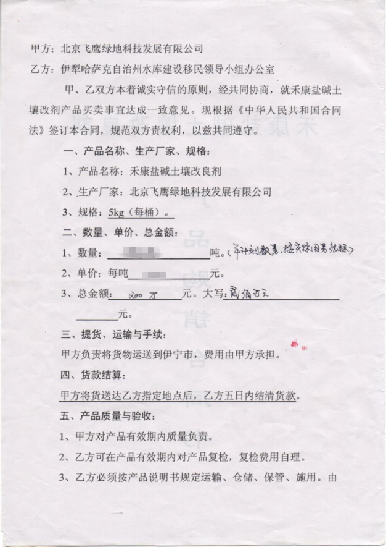2005年,北京飛鷹綠地科技發(fā)展有限公司與新疆伊犁州移民辦公室簽訂合作協(xié)議,由公司負(fù)責(zé)提供鹽堿地改良產(chǎn)品禾康土壤調(diào)理劑,并負(fù)責(zé)技術(shù)支持服務(wù),共同改良位于新源縣、鞏留縣以及察布查爾縣共計(jì)43600畝重度鹽堿地。改良前,土壤的含鹽量在1-3%,土壤的酸堿度為8.0-9.5之間,改良要求為改良后,當(dāng)年可以種植水稻、小麥、油葵等作物。經(jīng)過雙方共同努力,最終實(shí)現(xiàn)項(xiàng)目中的鹽堿地全部成功改良并達(dá)到項(xiàng)目要求。這為公司以后大面積改良鹽堿地打下堅(jiān)實(shí)的技術(shù)基礎(chǔ)。