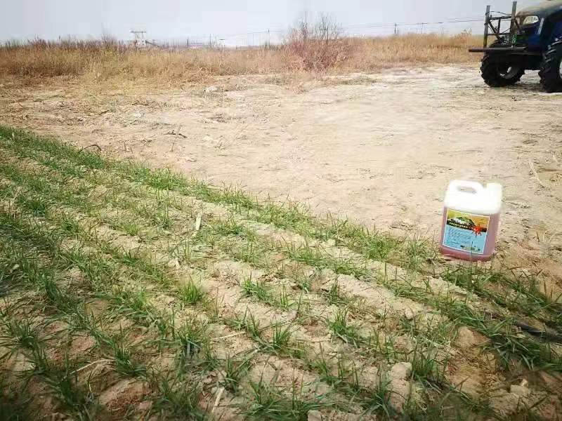 對(duì)于極重度鹽堿地,我公司的成功經(jīng)驗(yàn)是必須先采用大水漫灌方式,配合施用禾康土壤調(diào)理劑,將重度鹽堿地迅速改良成中輕度鹽堿地,再結(jié)合滴灌措施,采用干播濕出的方式,滴施出苗水時(shí)加入禾康土壤調(diào)理劑,保證出苗率。生長(zhǎng)過(guò)程中,再滴施禾康土壤調(diào)理劑,確保小麥苗正常生長(zhǎng)。